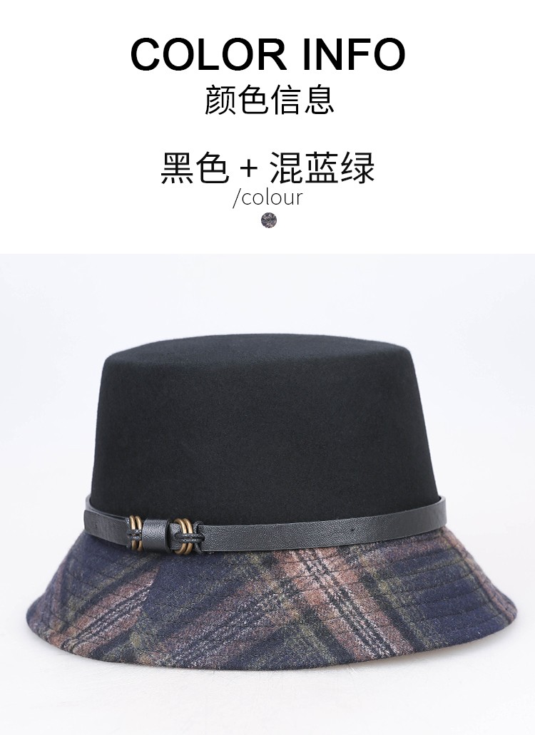 靈瓏小香風(fēng)格子漁夫帽女秋冬百搭帽子潮 英倫復(fù)古皮帶扣遮陽盆帽