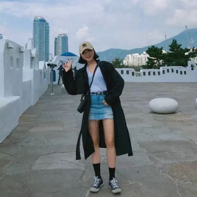 下搭牛仔短裙或者運(yùn)動(dòng)風(fēng)的短裙,是比較青春減齡的,也很適合學(xué)生黨
