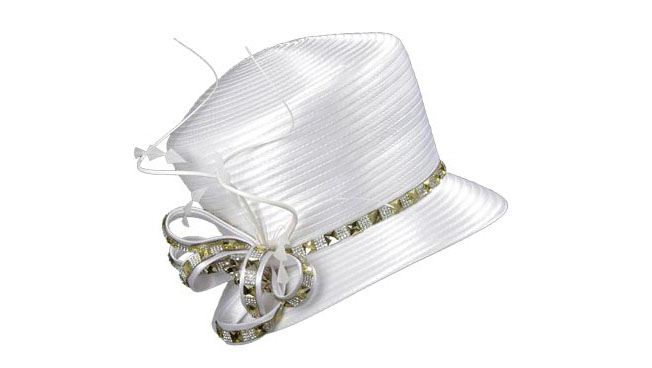 優(yōu)質(zhì)的環(huán)保色丁布料,塑造出了一個高大挺括的帽身,金銀剔透的裝飾更增添了它的高貴。